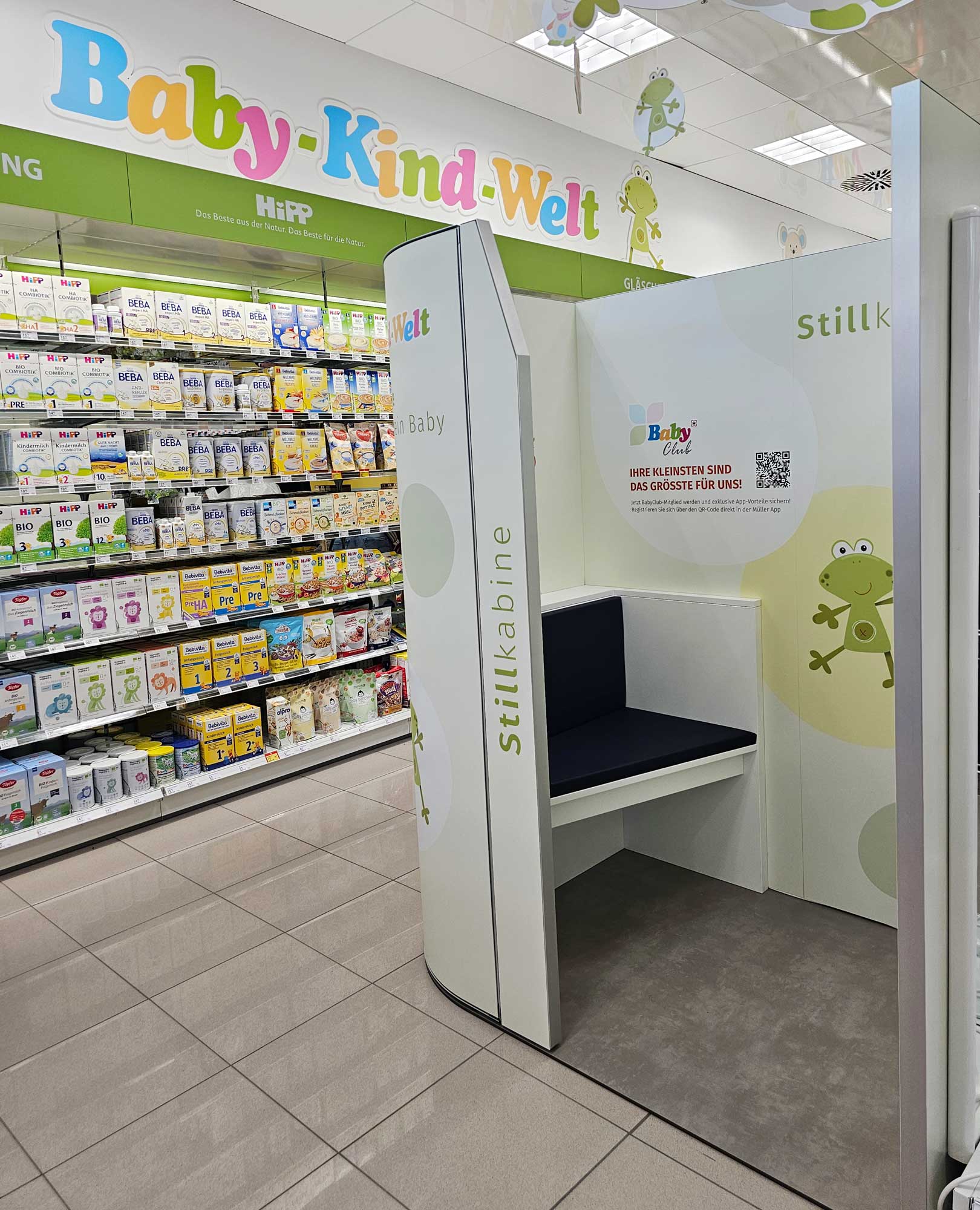 Bereits über 20 Stillkabinen wurden von uns produziert und bei Filialen des Drogeriemarkts Müller ins ganz Deutschland und dem angrenzenden Ausland aufgestellt.