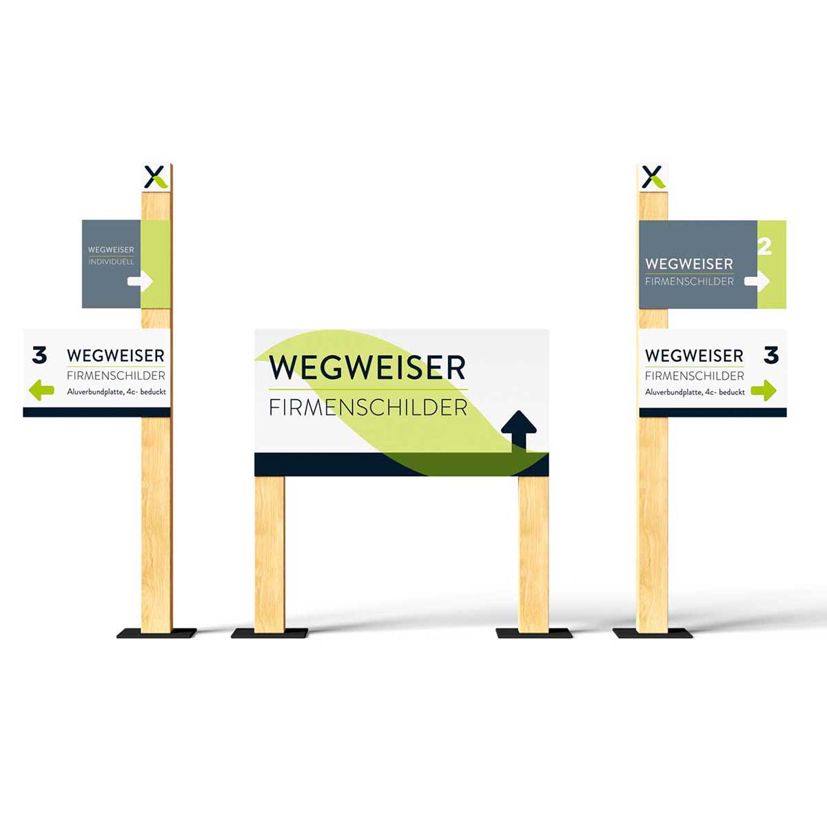 Unsere Wegweiser-Schilder sorgen für eine übersichtliche Beschilderung und gezielte Besucherführung. Ob in Unternehmen, Praxen, Hotels, auf Messen oder im Außenbereich – mit unseren hochwertigen, wetterfesten Schildern finden Kunden, Gäste und Mitarbeiter mühelos den richtigen Weg. Wählen Sie aus verschiedenen Materialien wie Alu-Dibond, Acryl, Forex oder Hohlkammerplatten und gestalten Sie Ihre individuellen Wegweiser ganz nach Ihren Anforderungen.