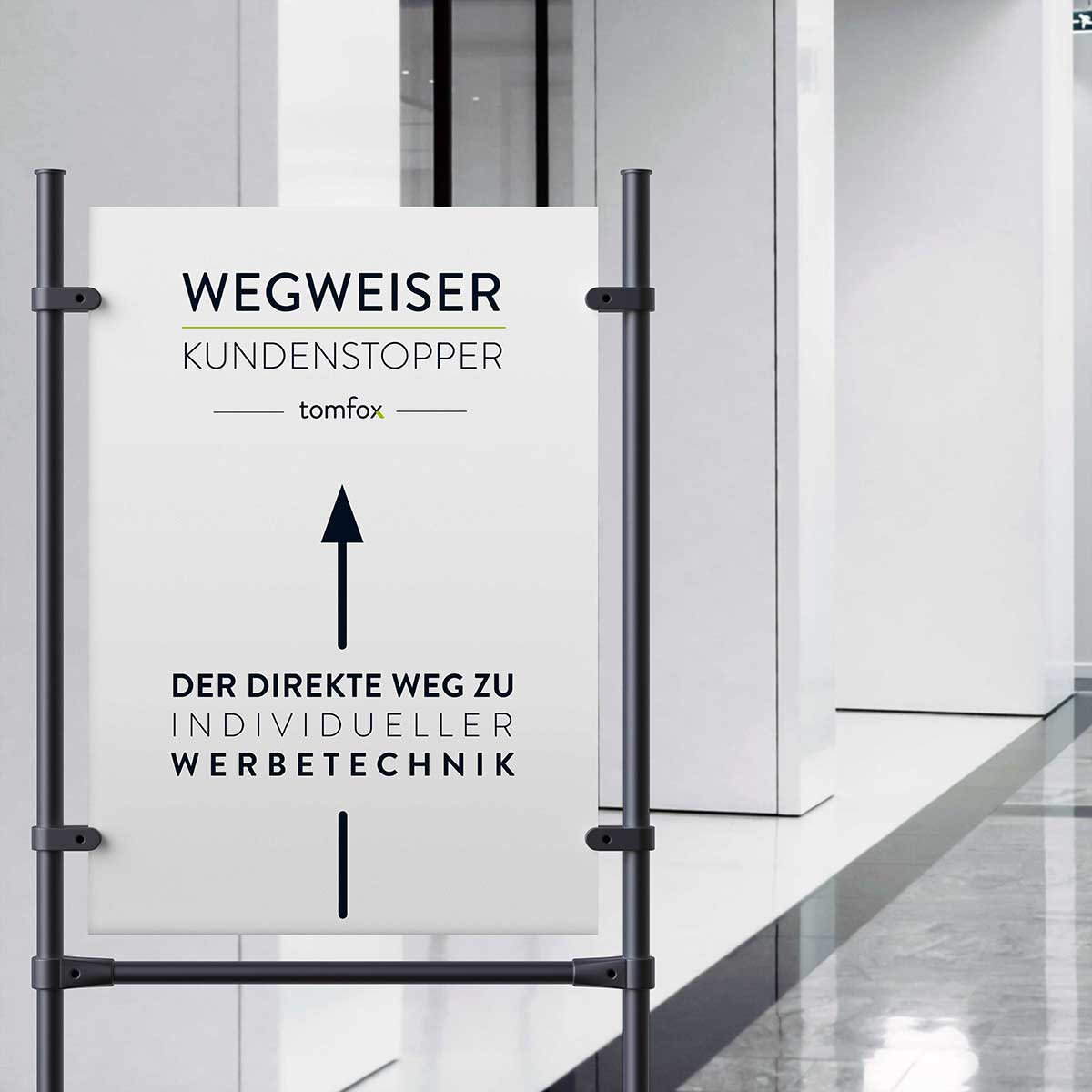 Unsere Kundenstopper sind die ideale Lösung, um Angebote, Aktionen und Werbebotschaften direkt ins Blickfeld Ihrer Kunden zu rücken. Wetterfeste Materialien und stabile Konstruktionen machen sie perfekt für Eingangsbereiche, Gehwege und Verkaufsräume. Dank schneller Wechselmöglichkeiten bleiben Ihre Werbebotschaften immer aktuell.